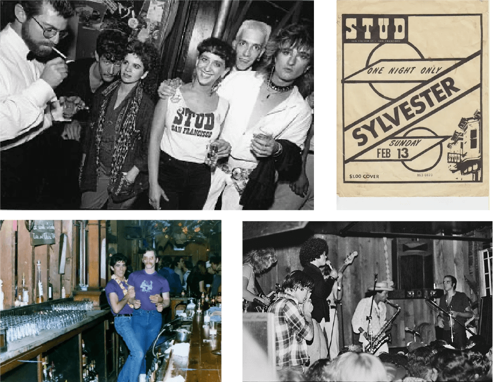 The Stud Bar narrowly escaped inception as a cafe in Las Vegas. The original location, a former biker bar, opened its doors on Folsom street in 1966. Original owner George Matson said, “It quickly became a bar for people, not just pretty bodies. A lot of women also came, and said it was the first gay men’s bar that they felt comfortable in.” The Stud changed many hands in the 70s yet stayed true to its ethos of inclusivity. In the 8os, it was known for being the first bar to cater to the New Wave and punk scenes while still holding court with intimate performances from Sylvester and Etta James. Notable patrons included Siouxsie Sioux who could be spotted at the bar shooting pool and Dianne Feinstein stopped by to shake hands for her campaign.